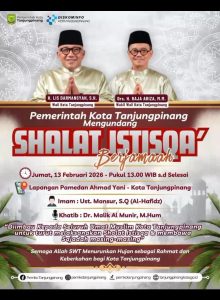 Tanjungpinang, Kepri – GardaTVnews.com Pemerintah Kota Tanjungpinang melalui Wali Kota H. Lis Darmansyah, S.H., bersama Wakil Wali Kota Drs. H. Raja Ariza mengimbau seluruh umat Islam di Kota Tanjungpinang untuk turut hadir melaksanakan Sholat Istisqa pada Jumat, 13 Februari 2026 pukul 13.00 WIB di Lapangan Pamedan Kota Tanjungpinang.(12/2/2026) Sholat Istisqa sendiri merupakan salat sunnah…