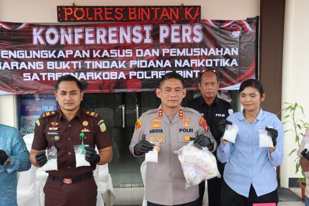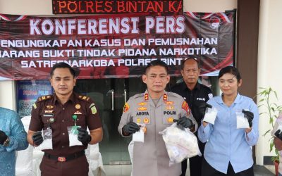 Bintan, Kepri – GardaTVnews.com Komitmen pemberantasan narkotika kembali ditunjukkan Polres Bintan. Melalui Satresnarkoba, polisi berhasil mengungkap jaringan peredaran sabu dengan barang bukti hampir 2 kilogram dan mengamankan tiga tersangka.(26/2/2026) Pengungkapan kasus ini disampaikan dalam konferensi pers di Lobby Mapolres Bintan, Kamis (26/2/2026), dipimpin langsung Kapolres Bintan AKBP Argya Satya Bhawana, S.H., S.I.K., serta dihadiri…