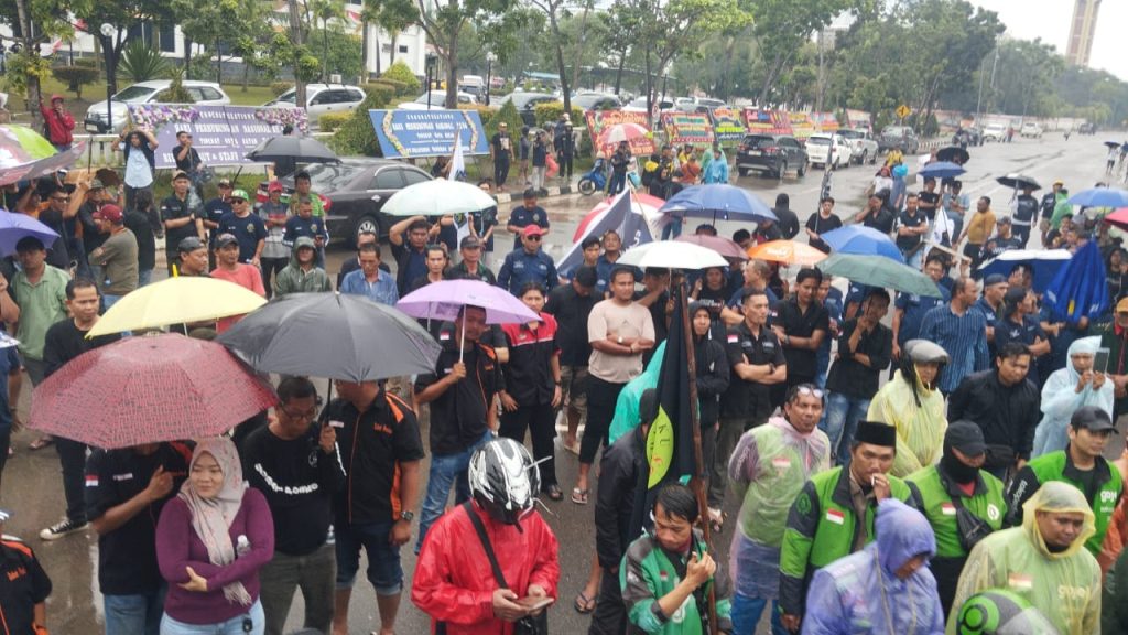 Basah Kuyup, Driver Online Batam Kepung Pemko Tuntut Keadilan