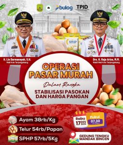 Kota Tanjungpinang – Gardatvnews.com Pemerintah Kota Tanjungpinang akan menggelar Operasi Pasar Murah dalam rangka stabilisasi pasokan dan harga pangan pada Rabu (17/12) di Gedung Tengku Mandak, Bintan Center, mulai pukul 07.30 WIB.